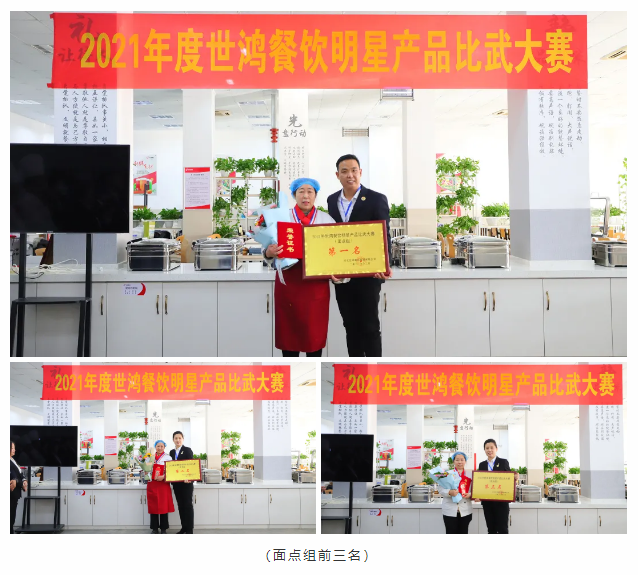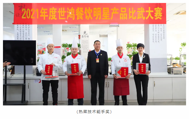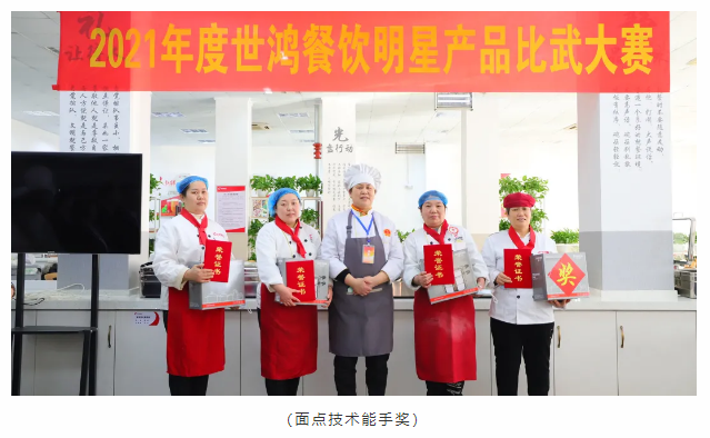 厨艺比赛分为热菜组和面点组两项比赛,每位选手都是精心准备、认真制作,激烈对决,缤纷呈现,将这一年的努力付出和用心态度都带入参赛作品中。经过评委们严谨认真的评审后最终评选出热菜组和面点组的前三名和技术能手奖。颁奖环节是最令人激动的环节,每一位获奖者由颁奖嘉宾用鲜花邀请至主席台,现场尽是大家热情的祝贺和掌声,充满仪式感的颁奖环节令世鸿的家人们开心而感动。大赛是对各项目厨艺基本功的检验,同时利用这个平台可以使大家相互取长补短,厨艺技能得以提升。新的一年,懂球帝将紧跟时代步伐,不断推陈出新。做高品质团餐,更好的服务于社会。
